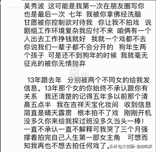 2018年9月,女演员陈昱霖自曝和吴秀波有不正当关系。而在陈昱霖怒斥吴秀波的长文中,张芷溪也不幸遭殃,被其疯狂辱骂。