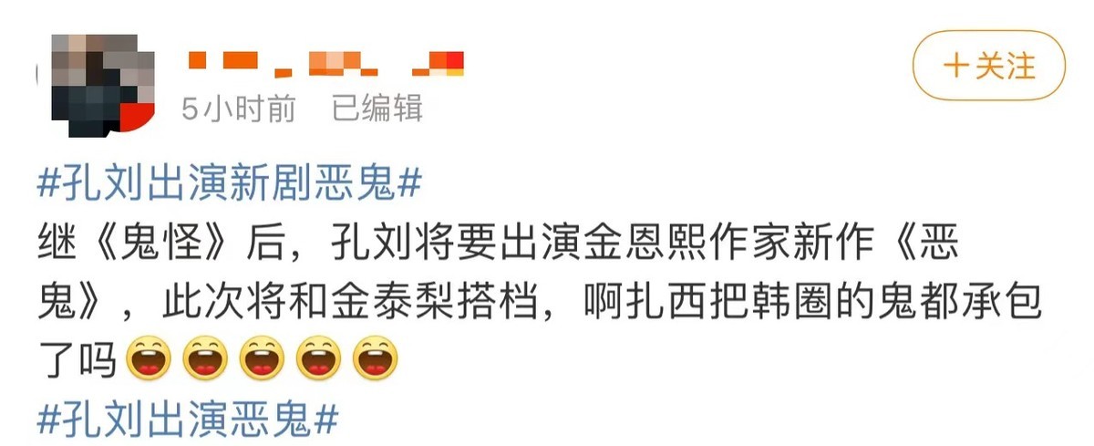 12月29日,韩国媒体发布了孔刘将与金泰梨合作出演新剧《恶鬼》的消息,目前正在商议中,两人的合作阵容引发众多网友期待!