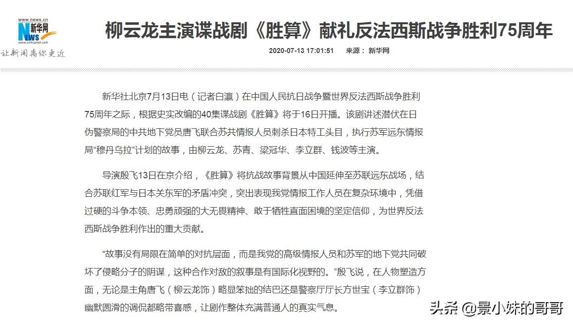 7月16日:尘封5年的柳云龙谍战大剧《胜算》正式掀开神秘面纱