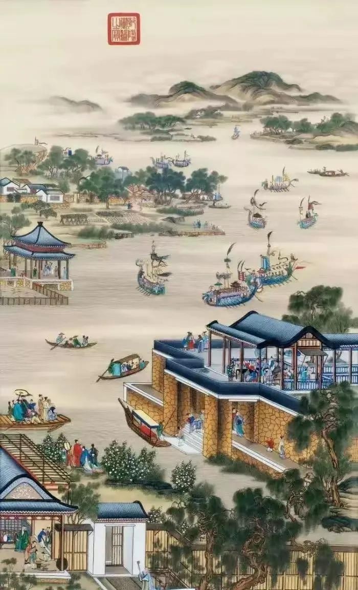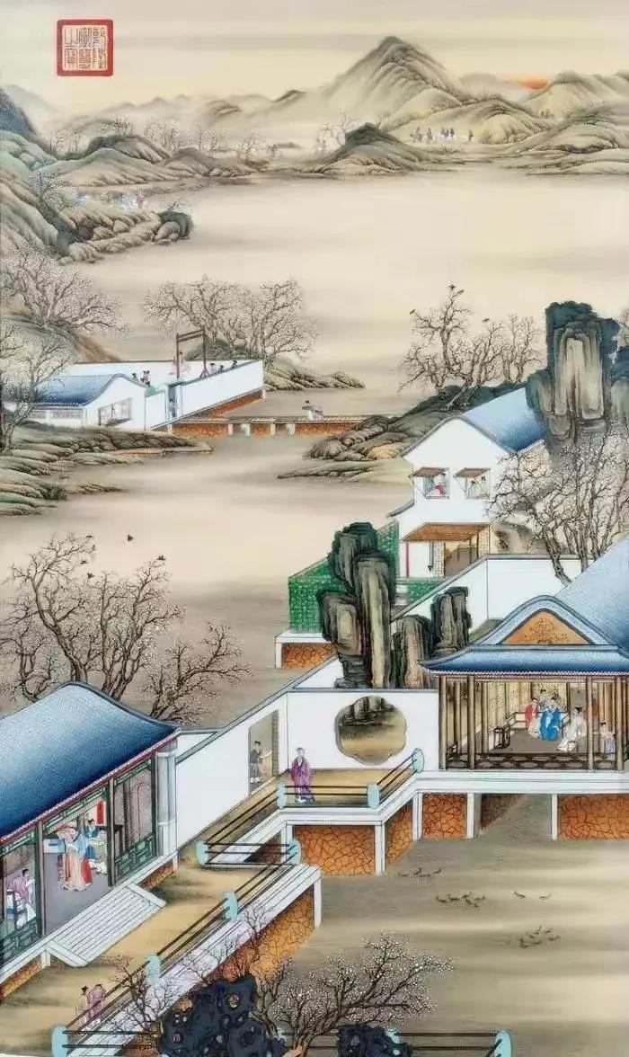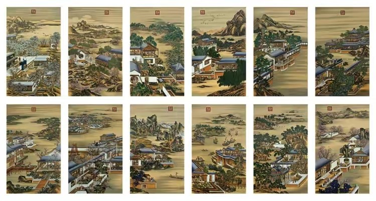 《雍正十二月令圆明园行乐图》是一组描绘雍正皇帝在圆明园日常生活的作品。按春、夏、秋、冬四季12个月的顺序排列,既展现了圆明园的各个场景,也表现了12个月的不同节令风俗。