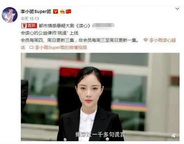 李小璐在这部剧中身穿西装扮演一位律师,而这部剧早在两年前就已经杀青,却因为李小璐与PGone事件拖延至今才上映。