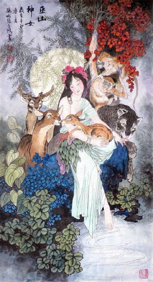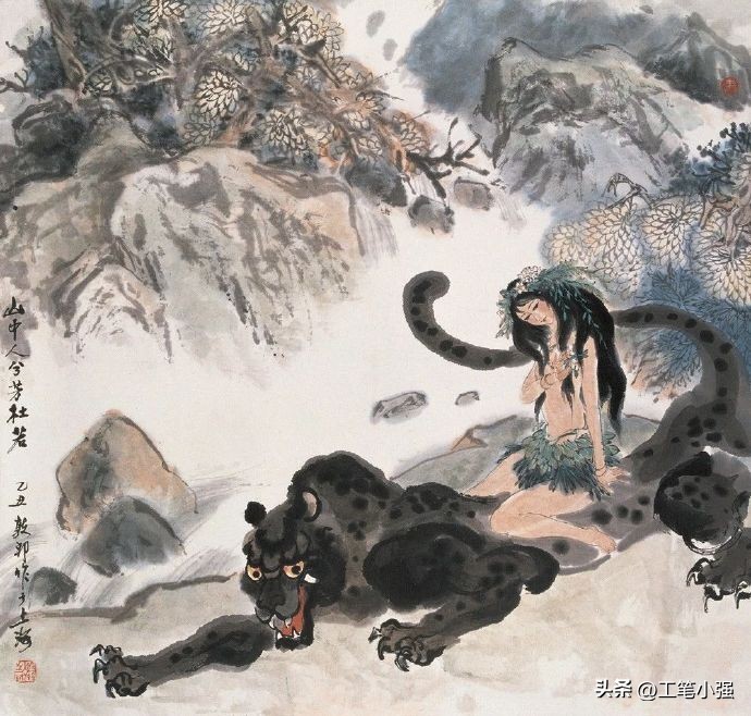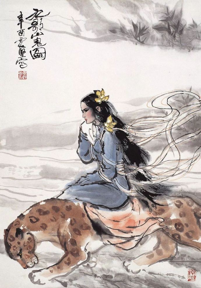 #春日生活打卡季#中国古代神话故事中,有许多令人惊艳的女性形象,其中最为美丽动人的之一便是山鬼。她在国画中经常被描绘,成为了中国神话中的第一美女。