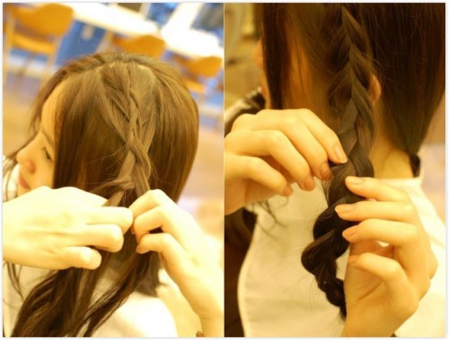 6. 用几个小夹子把刚才编好的部分和下面的头发夹在一起固定。