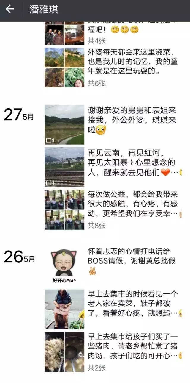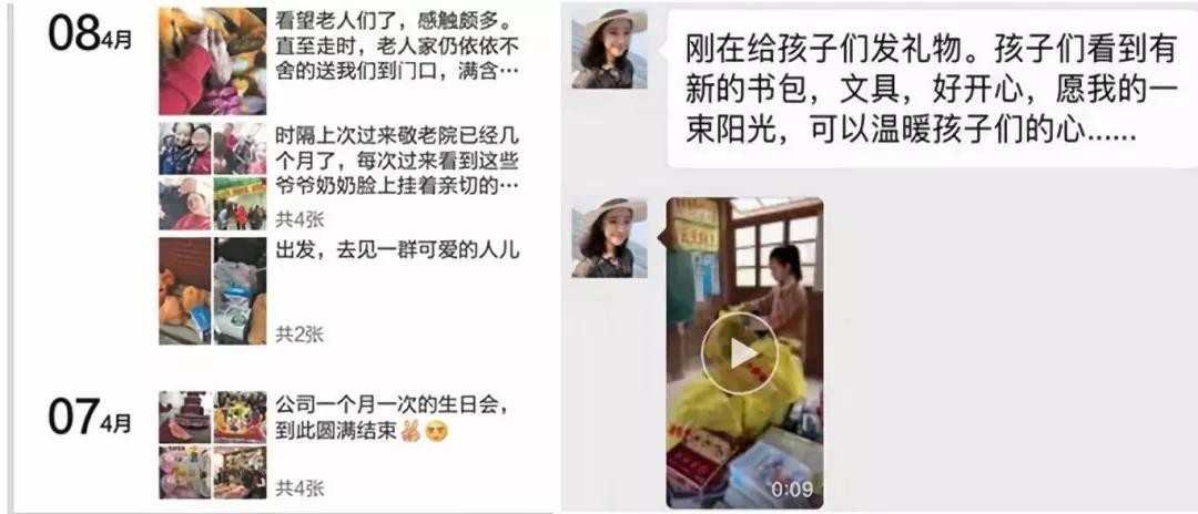 而且都是些正能量的东西,除了工作努力、热爱生活、喜欢读书,还非常有爱心,经常发一些深入养老院,帮助山区小孩读书等等的照片和小视频。