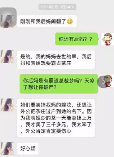 “我和我后妈打赌,如果我一周之内能卖出十万元的茶叶,她就必须把我妈留给我做嫁妆的茶庄还我,呜呜呜……”