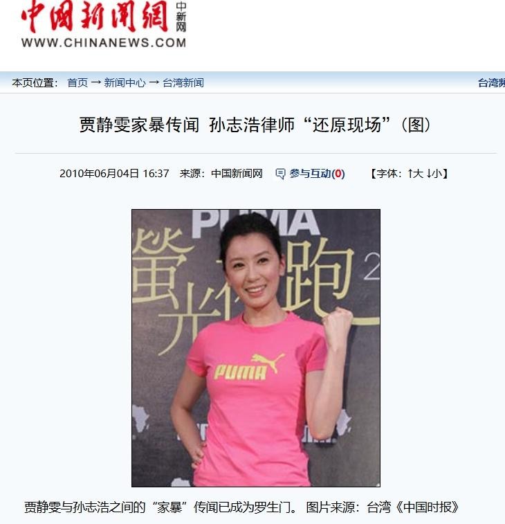 中国新闻网 2010年6月4日 关于贾静雯和孙志浩的报道
