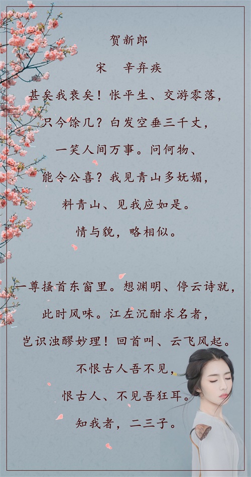 《贺新郎》十一首:辛弃疾 我见青山多妩媚,料青山见我应如是