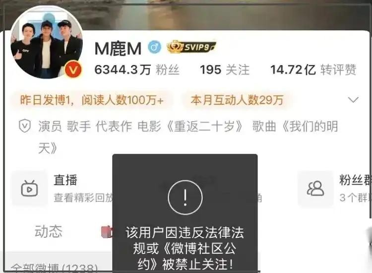 三大平台显示,鹿晗账号被禁止关注,并给出理由:“因违反法律法规或《微博社区公约》”。面对这一消息,网上关于鹿晗账号为何被禁止关注的问题,引起了众多网友的好奇。