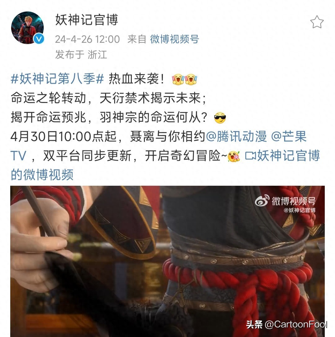 《妖神记》动画终于又要更新啦!4月26日,《妖神记》动画官博发布了第八季即将上映的消息,