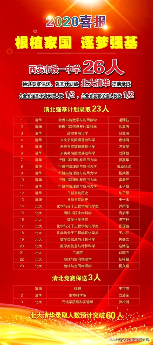 全省8人通过竞赛保送清华、北大,西安铁一中就有3人,占全省37.5%,列全省第二;