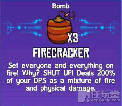 【爆竹】 用途:造成 200% DPS 物理伤害,并附带一定数值的燃烧伤害