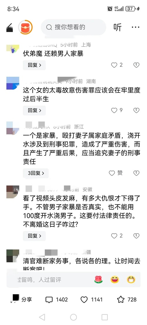 丈夫被妻子泼开水:后续泼前半小时曾暴揍妻子,家暴才是导火索