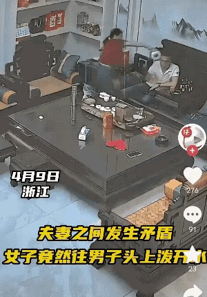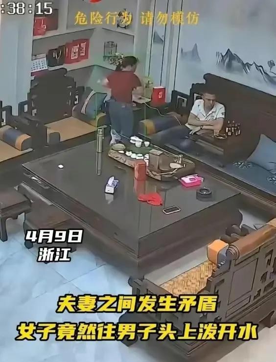 在视频中,我们可以看到男子正坐在一把红木沙发上,而旁边的女子则在偷偷观察他。当女子发现男子没有注意到自己时,她突然抓起一壶开水,毫不犹豫地朝男子的头部猛淋下去。