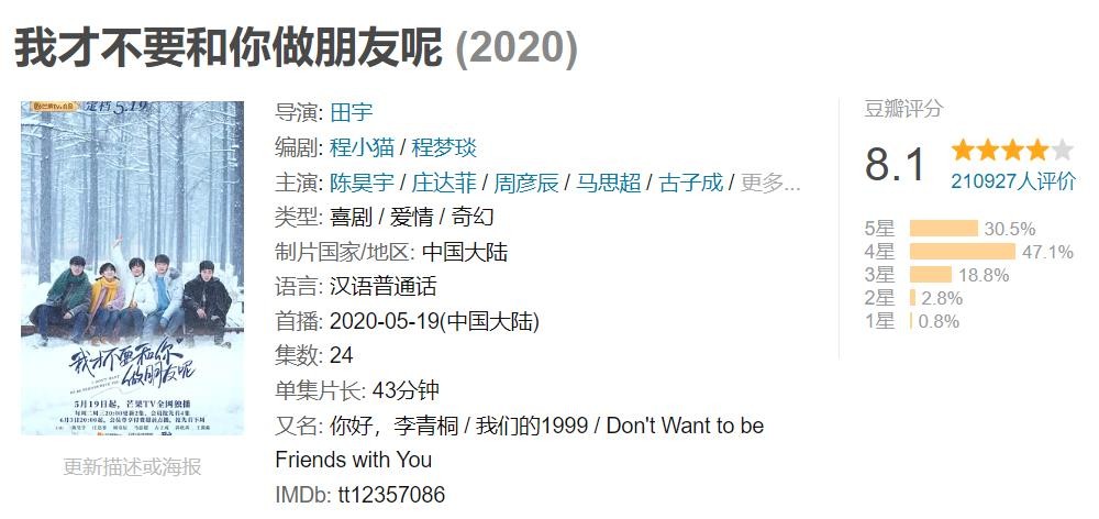 今天就推荐四部豆瓣8分以上校园剧,每部都有20万+网友打分,年轻靓丽的演员、引人共鸣的青春故事,有笑有泪,每一部都值得一刷再刷!