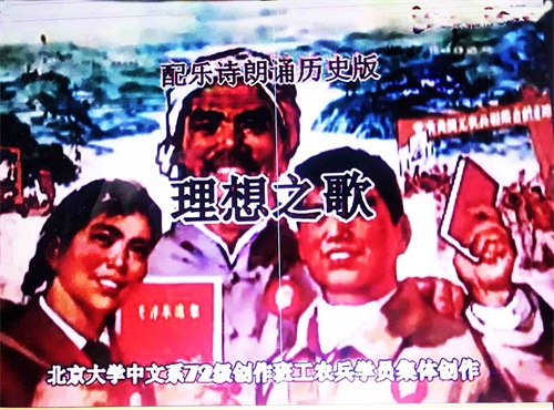 《理想之歌》是一首8万多字、500多行的长诗,署名是“北大工农兵学员集体创作”。1974年由人民文学出版社出版后,曾在小范围传抄。1976年1月25日,经过修改后的《理想之歌》在《人民日报》5、6版战地专栏全文刊载。编者按写道:“《理想之歌》是北京大学中文系部分工农兵学员1974年集体创作的政治抒情诗。它反映了广大知识青年在上山下乡和教育革命中锻炼成长的精神风貌。在当前教育战线大辩论中,清华、北大等院校的同志一再朗诵、阅读这首朝气蓬勃、激情洋溢的诗。这说明,它符合巩固和发展无产阶级文化大革命和教育革命胜利成果这一斗争的需要。本报刊登这首诗,以供更多的同志阅读,并用以回击教育界右倾翻案风,批驳那种攻击工农兵学员‘质量低’之类的奇谈怪论。”