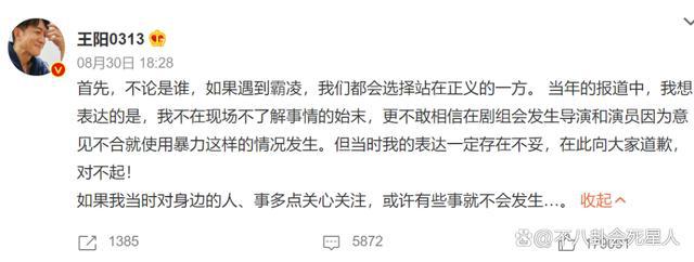 王阳的说辞虽不明显站队,但看得出来维护导演。这次孙菲菲旧事重提,王阳也因不堪舆论压力再次回应,自己当年的表达一定存在不妥,并表示歉意,还说自己一定是站在正义一方,但却没有明确表示支持孙菲菲。