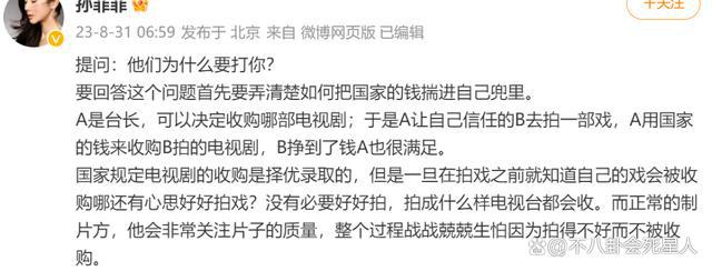 而在孙菲菲最新的发文里也解释了为什么会受到霸凌,她也同时揭开了剧组和电视台丑陋的一面,那就是一个行规,电视台提前决定了要收购的剧集,直接安排给信任的导演和剧组制作,那电视剧的质量就变得不是最重要的。