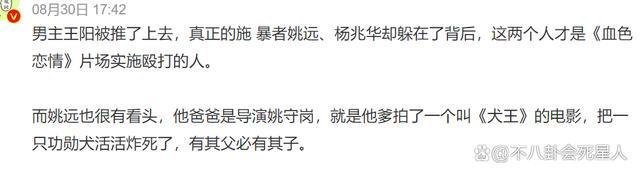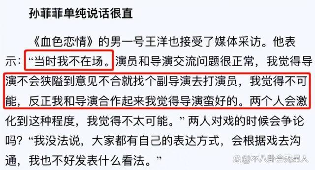 当时王阳作为《血色恋情》的男主角也对这件事进行了回应,但他说的是,他不在现场不清楚这件事,但他不相信导演会因为和演员意见不合就找副导演打演员,并表示导演的人很好。
