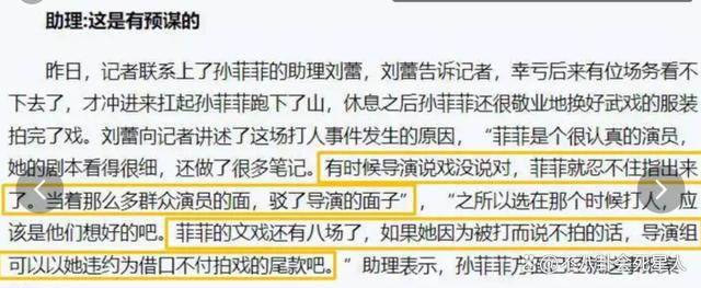 因为有网友发现,其实当年孙菲菲已经曝光过在剧组被殴打的事情。