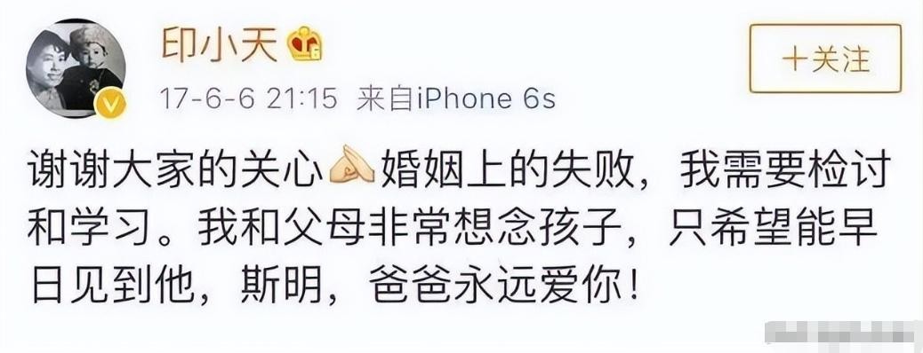 印小天在微博上说:“斯明,爸爸永远爱你,希望能早日见到你”。