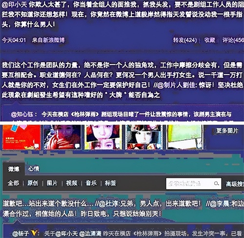 边潇潇咽不下这口气,男友为了帮她出气,找到扬子为女朋友讨回公道,这位女演员声称自己被印小天殴打。