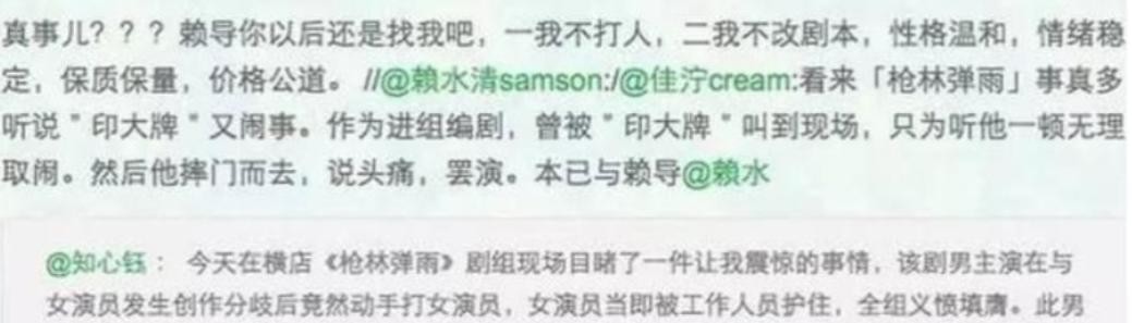 保剑锋说:“赖导,你以后还是找我演戏吧,一我不打人,二我不改剧本,性格温和,情绪稳定,保质保量”。