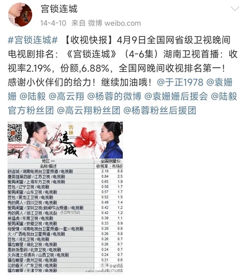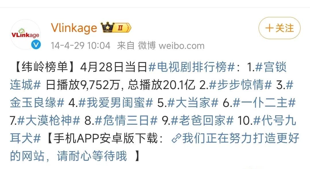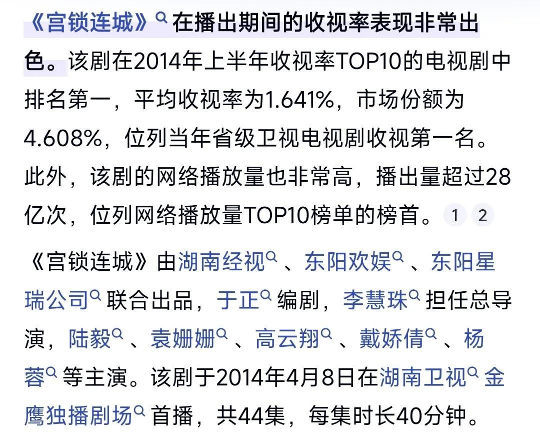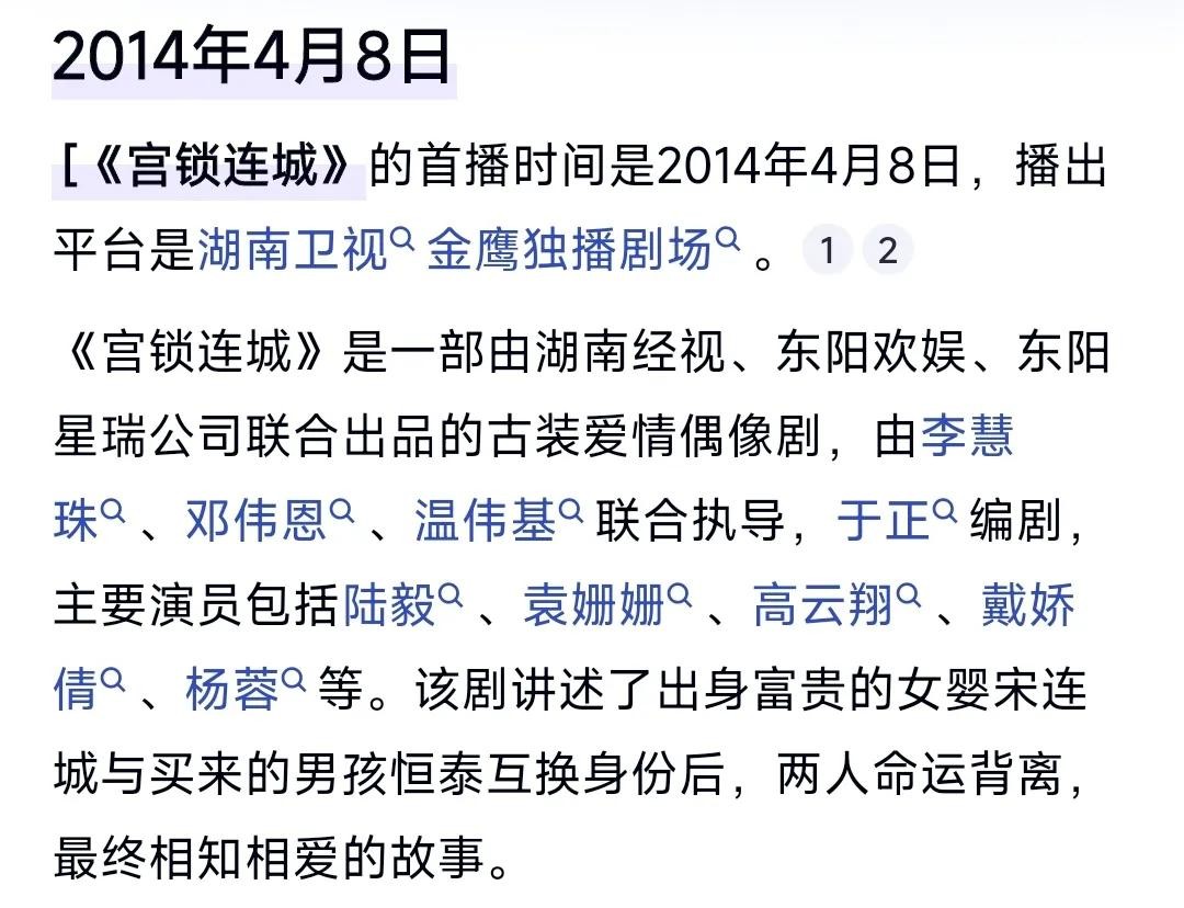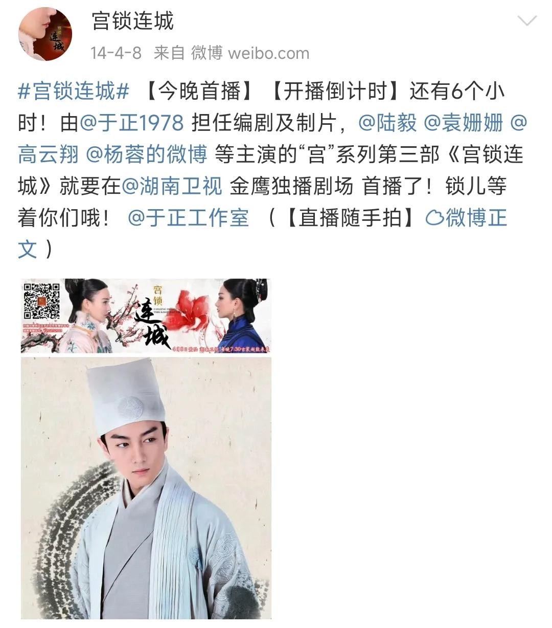 过一下时间线,《宫锁连城》的播出时间是2014年4月8日,