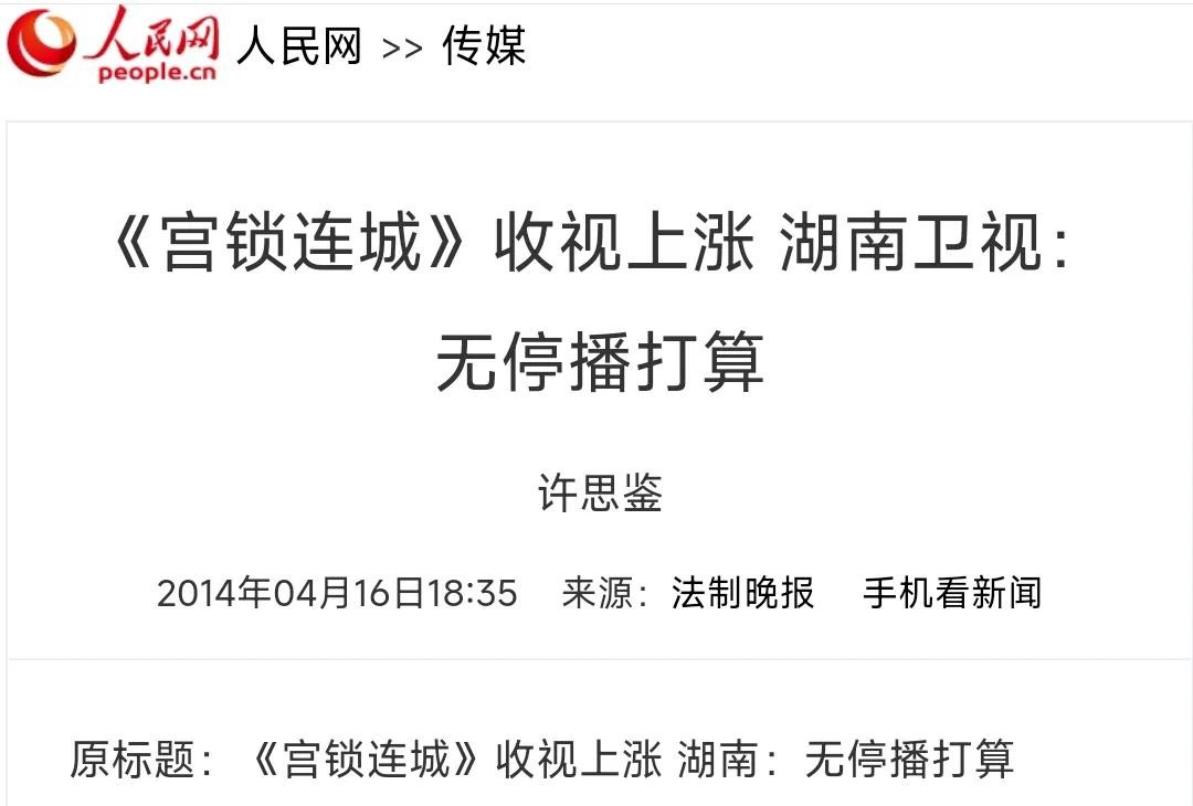 时间线回到2014年,湖南卫视坚持播于正的《宫锁珠帘》,所以琼瑶才又找到了电视剧播放的监管平台广电总局,希望停止播放于正的剧