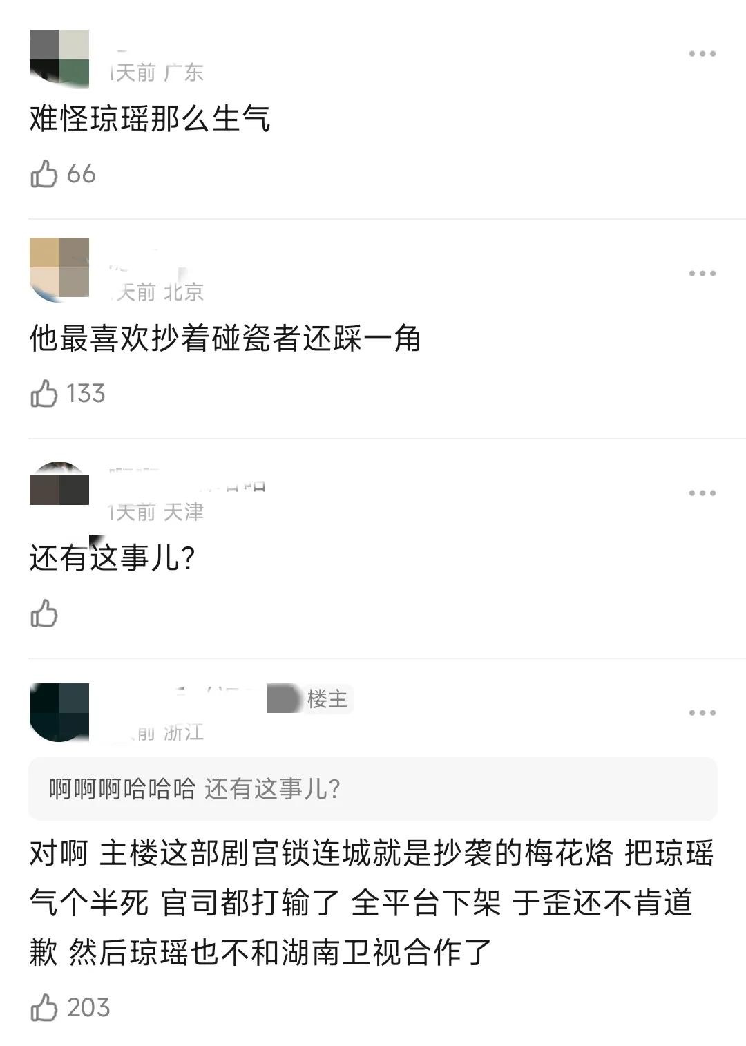 大量正义网友@原作者琼瑶,纷纷举报湖南卫视的热播剧抄袭,