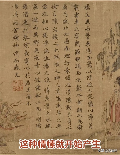 与西方宗教题材绘画不同,《洛神赋图》将神话情感化、人性化。洛神并非高高在上的女神,而是充满哀婉之美的东方维纳斯,体现了中国艺术“哀而不伤”的美学境界。