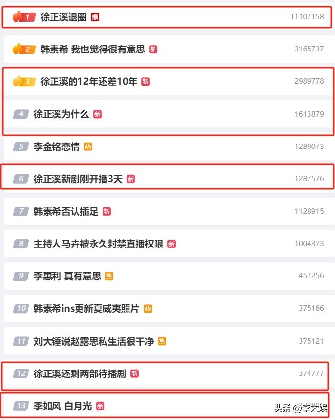 3月15日,一则名为“徐正溪退圈”的词条登顶热搜,随即包括“徐正溪为什么”、“徐正溪的12年还剩10年”以及“徐正溪古装美男”等相关词条霸屏热搜榜。超多网友在震惊之余,一边回味他饰演过的出圈角色,一边质疑其突然退圈的原因,其中有两个原因传出有待考证。
