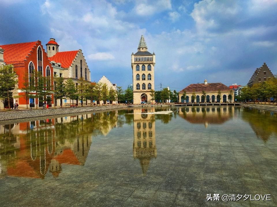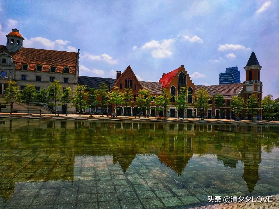 这个欧洲风情小镇,其实面积也很大,大概可以游玩1~2个小时左右。然后小镇里面有一个很大的湖面。。围着湖面四周的是一个建筑群。因为湖里面的水很清澈。而且它的深度不是很深。所以,四周的建筑群的影子会倒映在湖面上。