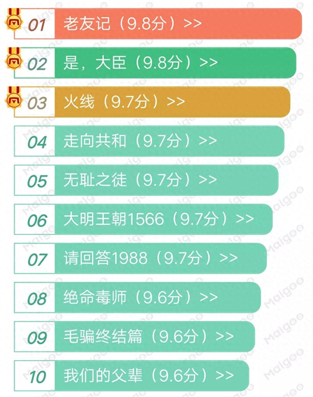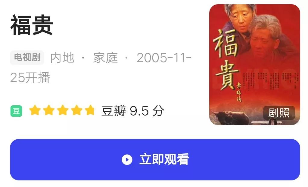 哪怕是以崇洋媚外著称的豆瓣,都给它打出了9.5的高分。毫不客气地说,反映普通小人物生活的国产电视剧,《福贵》才是当之无愧的第一名,天花板。