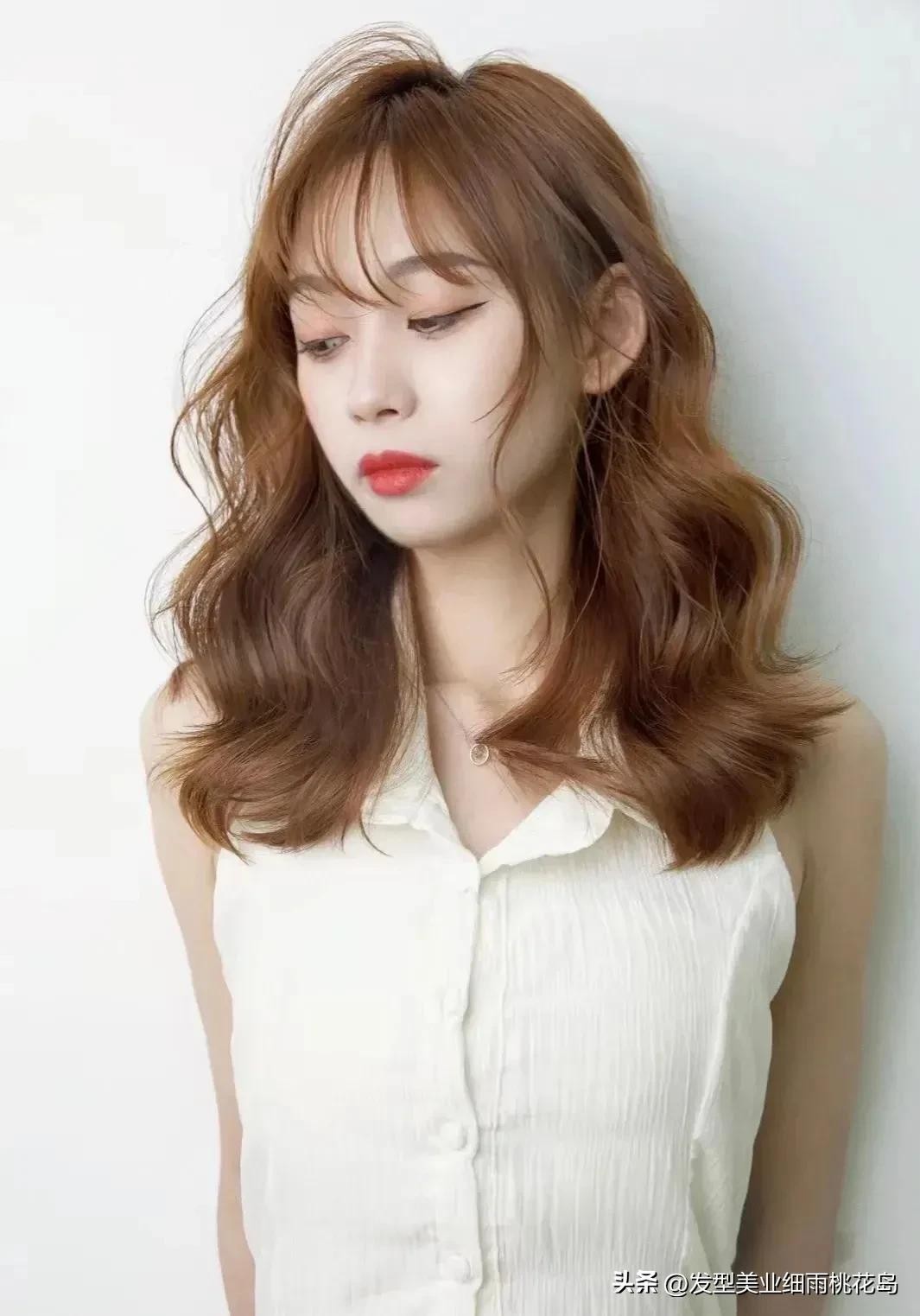 超级柔顺的一款微卷网红发造型,选用最显白的奶茶色作为发型的显白利器,简单大方的微卷八字刘海作为辅助作用,让精致的五官更精致,脸型小巧可人惹人怜爱,带出女生清新感的一面,这样的网红烫发适合鹅蛋脸,还有颧骨有点高的女生,修饰脸型让你变得更年轻。即使是大脸女生也非常适合,使得精致的瓜子脸与立体的五官尽显。