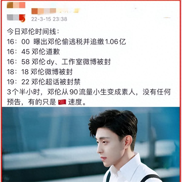 中国速度就是最牛的,在封杀问题演员的时候也是一样的,三个半小时,让邓伦从顶流变成“素人”。