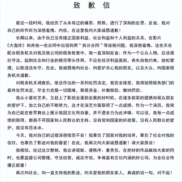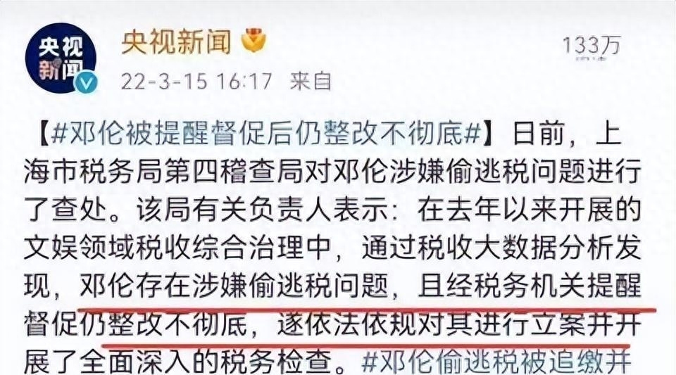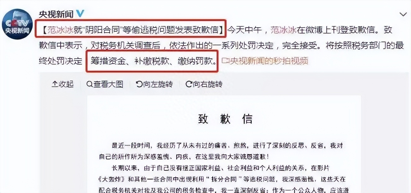 但是又是在风头正旺的时候,再次被爆出来税务问题,官方通报的大概意思就是她和演出商签订虚假合同,逃税106.08万。