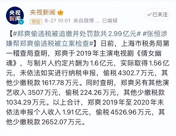 而这还要“感谢”郑爽的前男友张恒,因为郑爽偷税漏税就是他举报的。