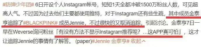 金泰亨与 Jennie 的联系始于 21 年底,男方曾火速关注了女方的 ins,事后又光速取关,对外只说自己手滑了。