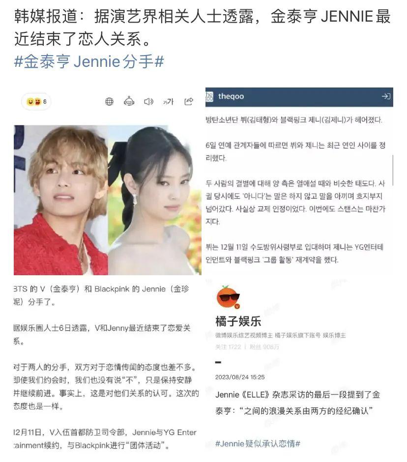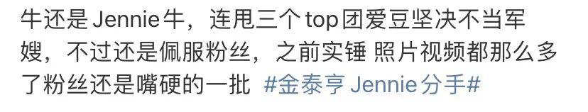 不过最让路人惊叹的,倒不是 Jennie 和金泰亨的瓜有多实锤,而是妮姐为何有如此神力,竟然把男团 top 都谈了个遍,事后还能不带走一片云彩地搞事业去。