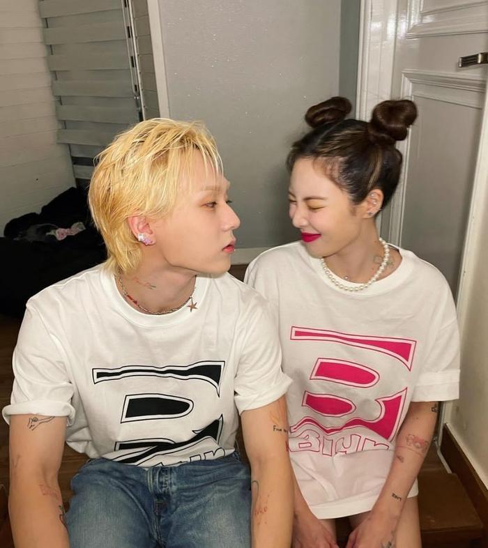 在公开的照片中,泫雅身穿长款T恤展示了她下衣失踪的时尚,一起合影的金晓钟也身穿同款情侣装T恤,没有华丽的风格,泫雅以舒适的休闲装展现了自己的形象。一件长T恤和一件短下装简单的时尚单品,两人交往多年,现场气氛似乎很亲密。