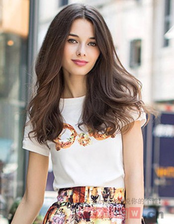 以清新低调的深棕色染发颜色为主,再搭配中分的露额发型将女生精致的鹅蛋脸完美的呈现出来,而精致的发箍与长卷发的搭配最显青春少女风了。