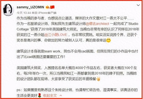 表示江一燕不说实话,故意带偏节奏蹭流量,这个设计奖和她一点关系都没有。