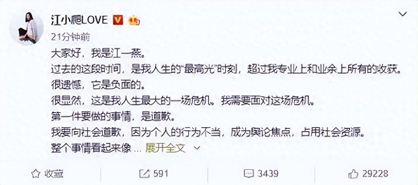 谴责之声,不断充斥线上平台,让江一燕的人气跌入谷底。