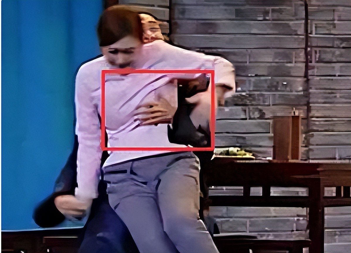 但实际上,他的手则是十分有分界感的并未触碰到女演员的身体。