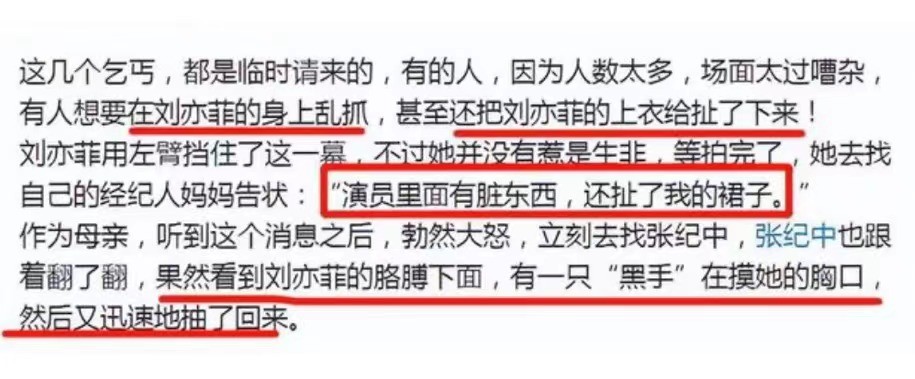 不仅如此,刘亦菲在她未成年时,也被不知名的群演非礼过。