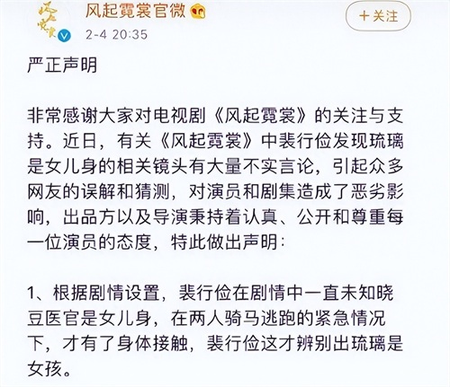不过,随后剧组便针对此事发了一则声明。