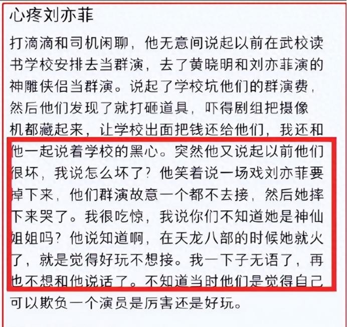 据网友爆料,她在打车时遇到了刘亦菲当年的群演。