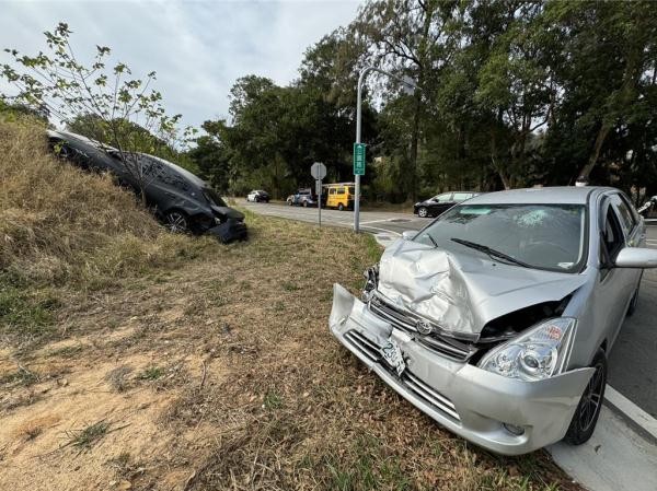 据了解,事发时,何润东驾驶的玛莎拉蒂跑车车尾遭撞烂,卡在一旁的山坡上,另一辆车则是车头撞凹,挡风玻璃破裂。