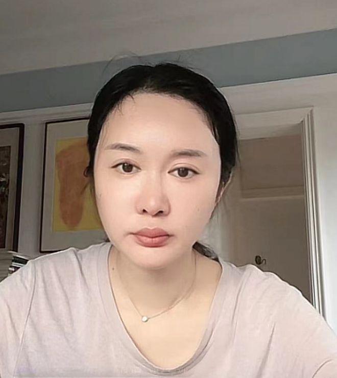 头发微微有些油腻贴着头皮,身上穿着一件素色的纯棉睡衣,脸上未施粉黛。