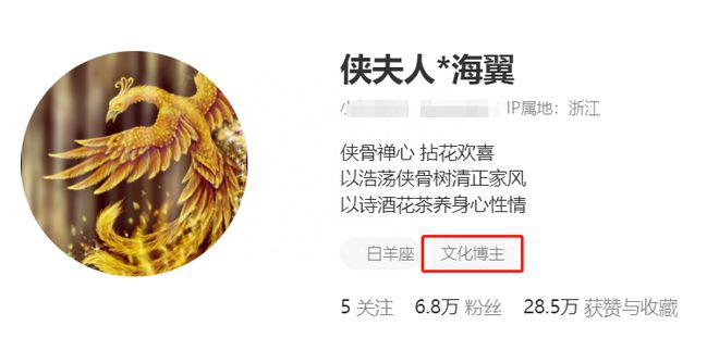 她的社交平台,经常分享一些修身养性的诗歌词句,标签更是直接写的 " 文化博主 "。